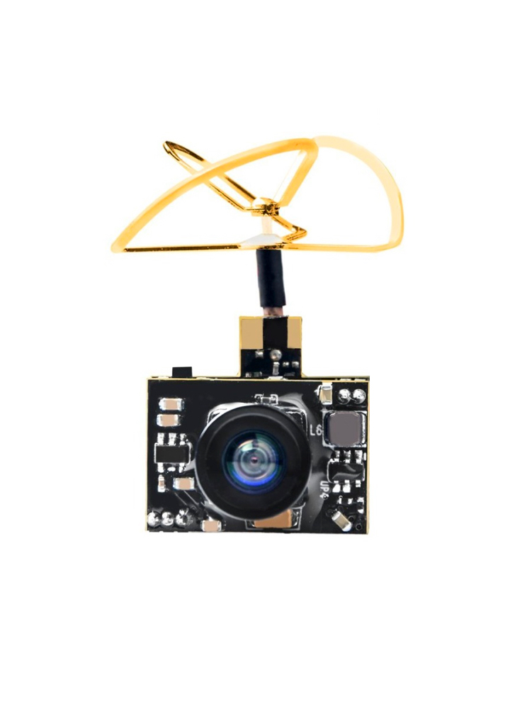 A tiny all-in-one camera transmitter unit. It can be poweredย from a 1S LiPo battery.