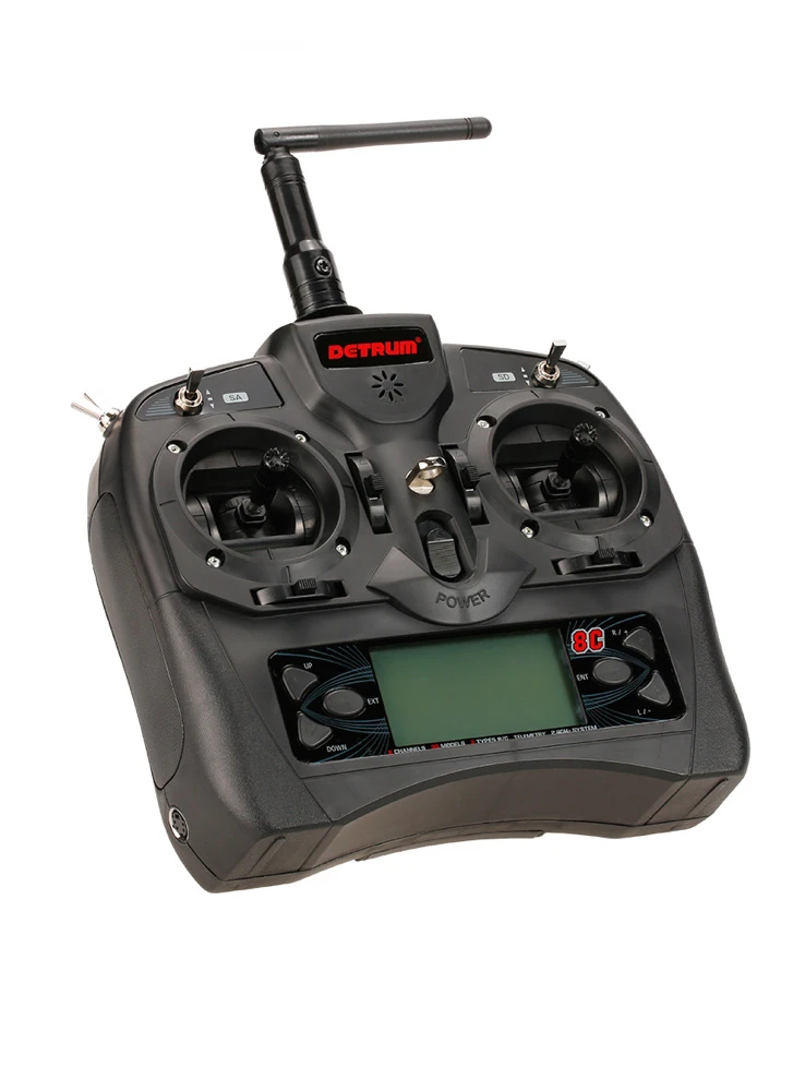 The Detrum 8C from Dynam is a popular starter radio for fixed wing pilots.