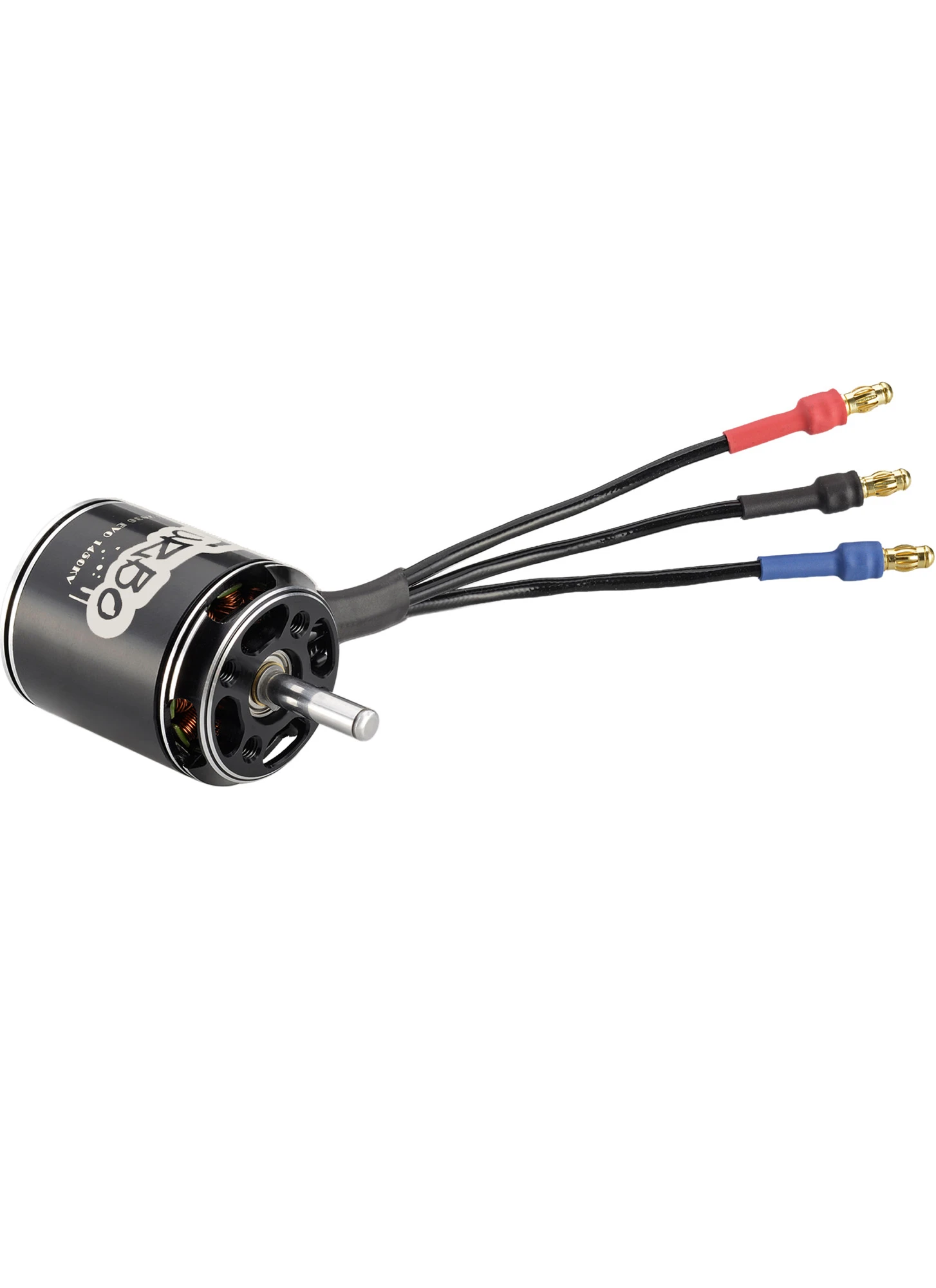 Each motor is PRE-SOLDERED with 3.5mm male gold bullet connectors, and includes an accessory pack with spinner-style prop adapter, X-mount plate and matching set of female 3.5mm bullet connectors.
