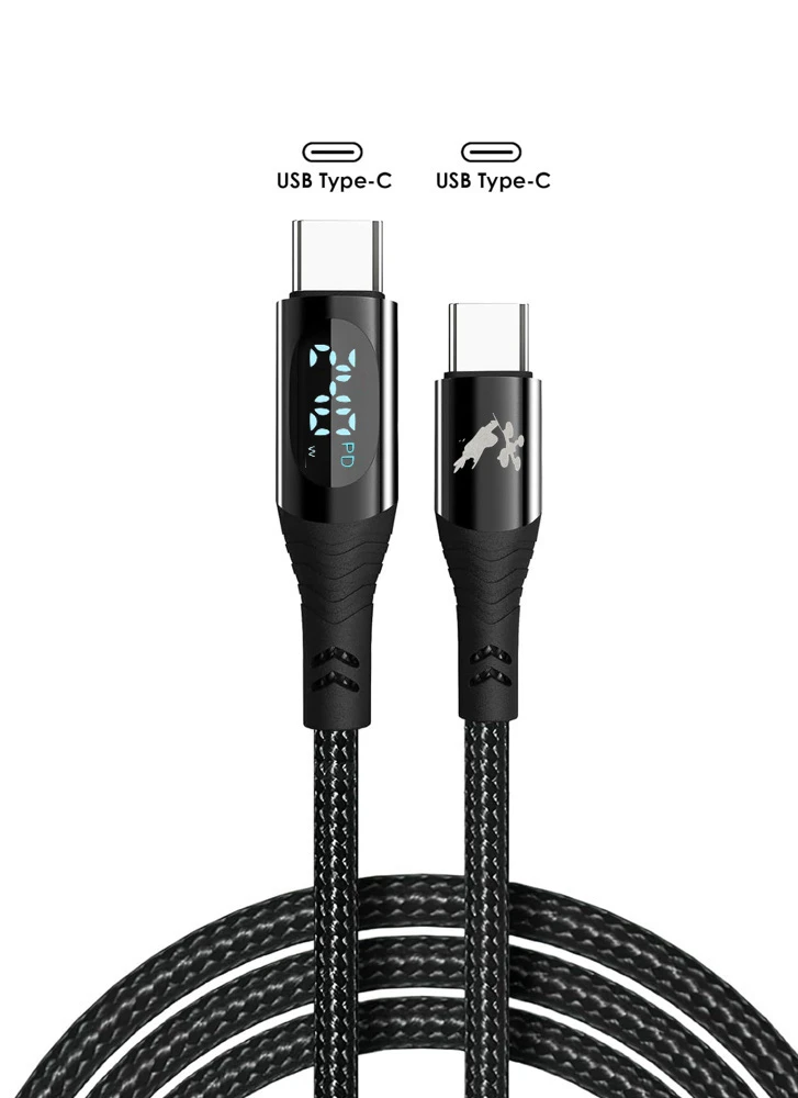 Flying Tech 240W Double USD Type-C PD Fast Charging Cable with Digital Display – 1M