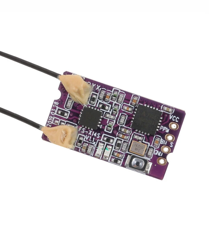 The FS-X14S is a dual antenna receiver using the AFHDS 2A protocol. Itsย compact, easy to bind and install, and best of all, reported to offer the best range of all the FlySky receivers.ย The receiver supports PPM/S.BUS data outputย signal. It compatible with all FlySky radios operatingย AFHDS 2Aย protocol, includingย FS-I6, NV14, FS-I6X, FS-i4, FS-I4Xย Transmitters.