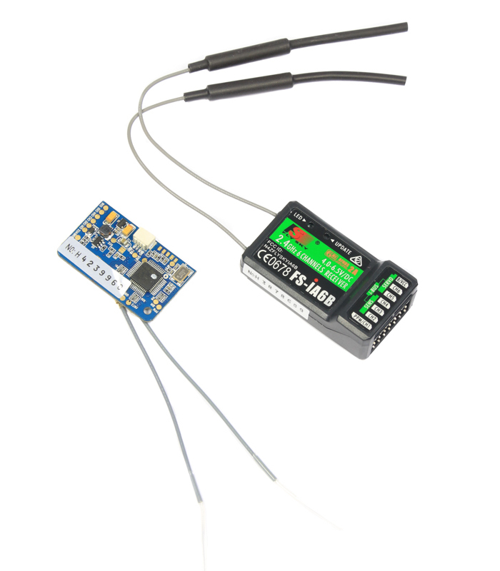 The FS-X6B is FlySky’s latest AFHDS receiver, and it’s been designed with multirotors in mind. It’s their most compact and lightest receiver to date and yet boasts even more features than the FS-iA6B. Like the FS-iA6B the FS-X6B uses the AFHDS 2A (Automatic Frequency Hopping Digital System) protocol, which provides a very reliable interference free operation. The Rx features 6 PWM channels, 8 PPM channels and i-BUS support for up to 18 channels alongside aย reliable voltage sensorย builtย in (1-4S,ย 0 – 18volts). The advantage of PPM / i-BUS over traditional PWM channels is that you only need to use one signal wire, rather than one for each PWM channel – hence for PPM i-BUS compatible flight controllers such as the Naze32, the wiring is greatly simplified.