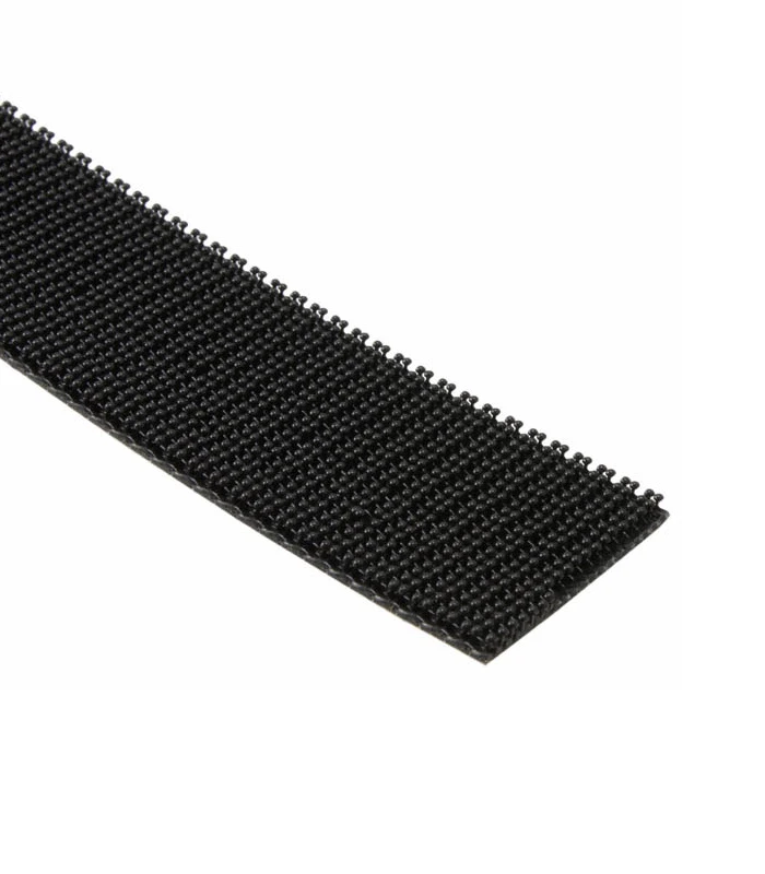 - Black fastener with mushroom shaped stems, backed with an acrylic pressure sensitive adhesive