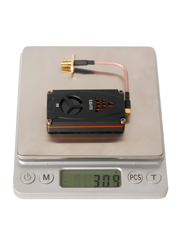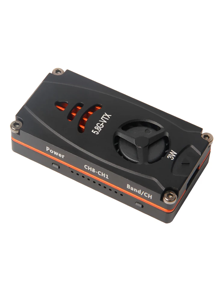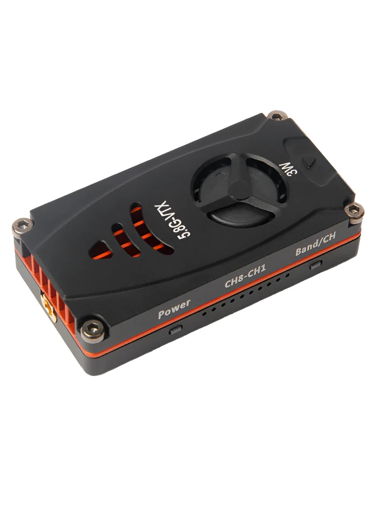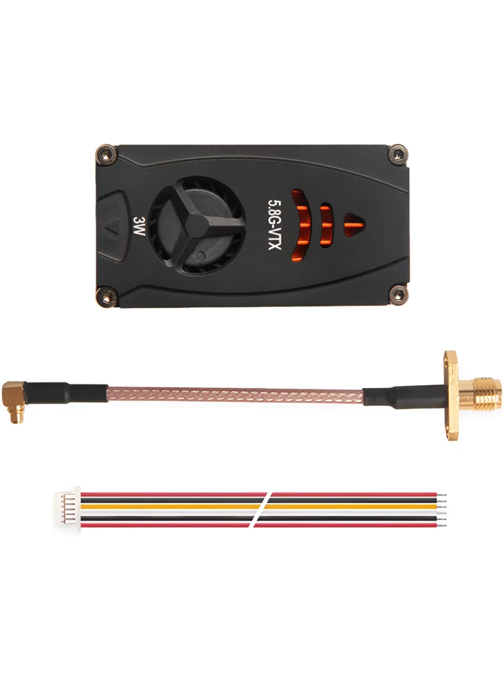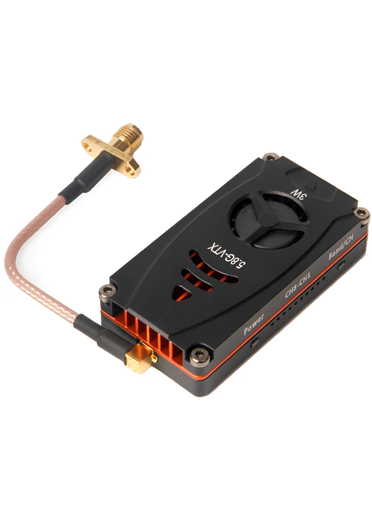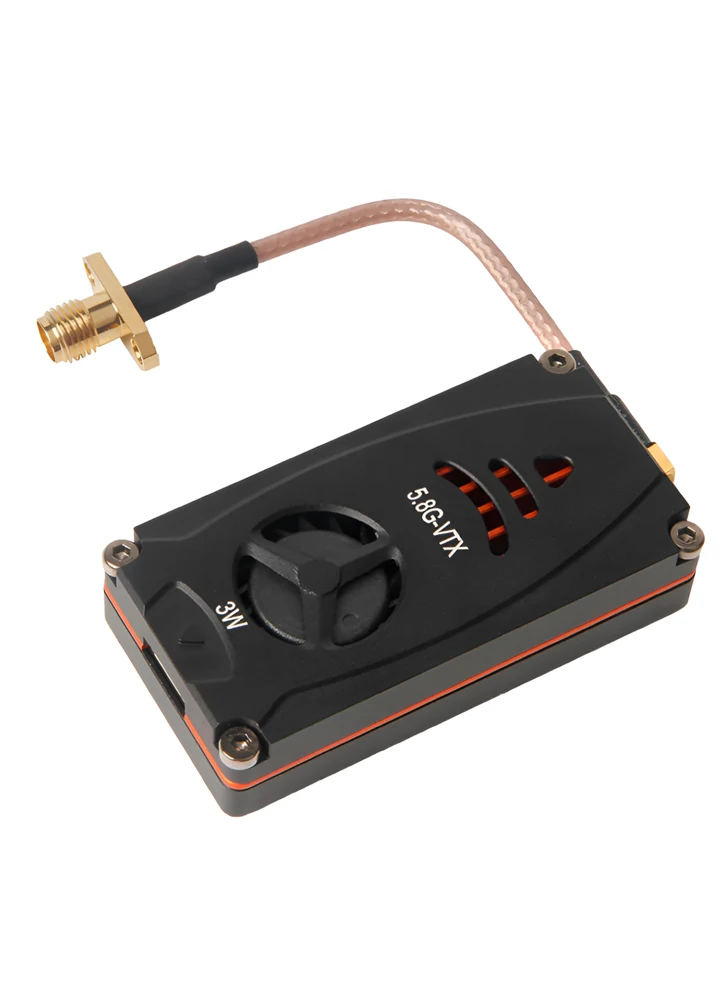 This video transmitter offers a variable power supply, from 25mW (UK legal limit) up to 3W. Running at 3W generates a lot heat, so the VTX incorporates a built-in fan. It also has Pit Mode so that you can power up your VTX to change settings without knocking other pilots out of the air. There is also IRC Tramp which allows you to control your VTX via your flight controller to change channel and transmitting power remotely from your RC. The Atlatl Pro VTX comes with a durable MMCX connector and also with a pigtail SMA converter.