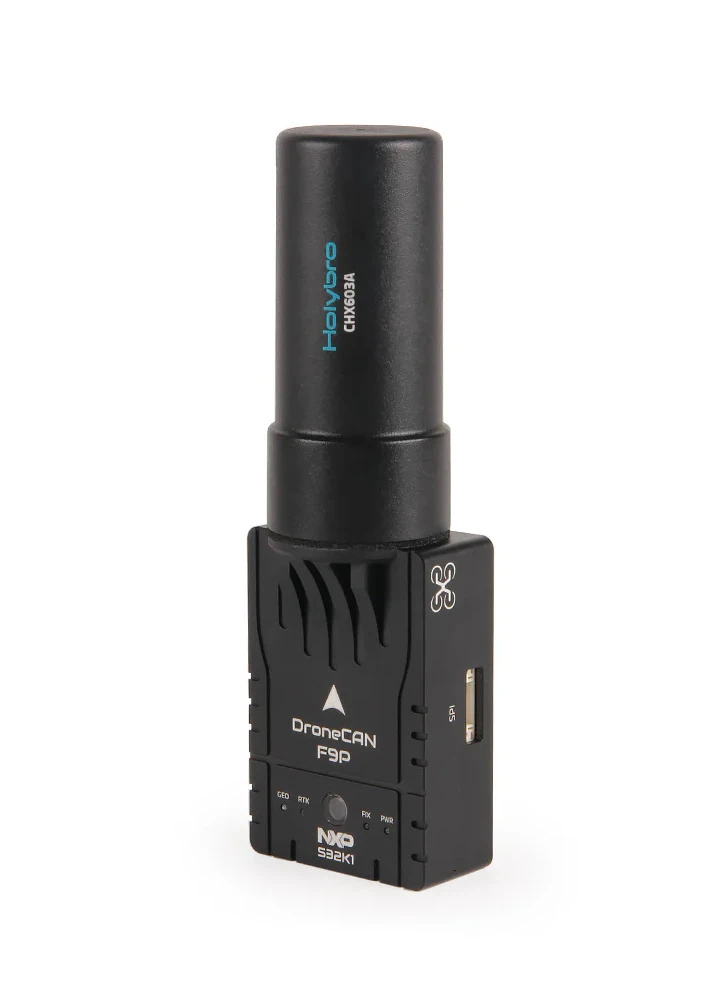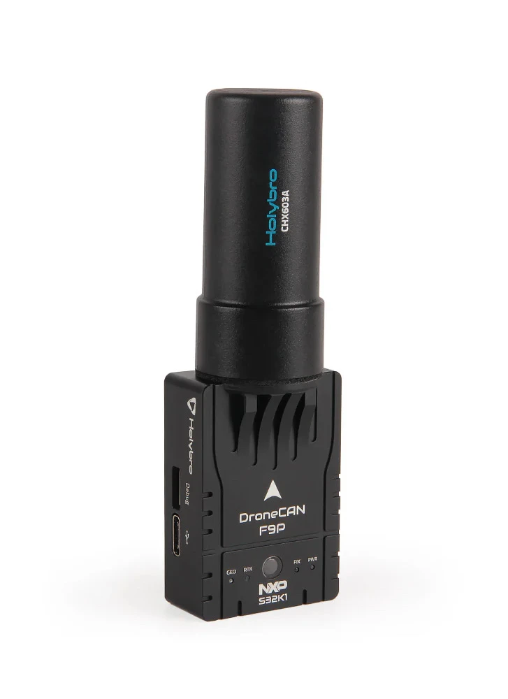 The DroneCAN H-RTK F9P (NXP S32K1) is the latest differential high-precision GNSS positioning system from Holybro. It has adopted the DroneCAN protocol for communication. It provides multi-band RTK with fast convergence times and reliable performance, concurrent reception of GPS, GLONASS, Galileo and BeiDou, and a fast update rate for highly dynamic and high volume applications with centimeter-accuracy.