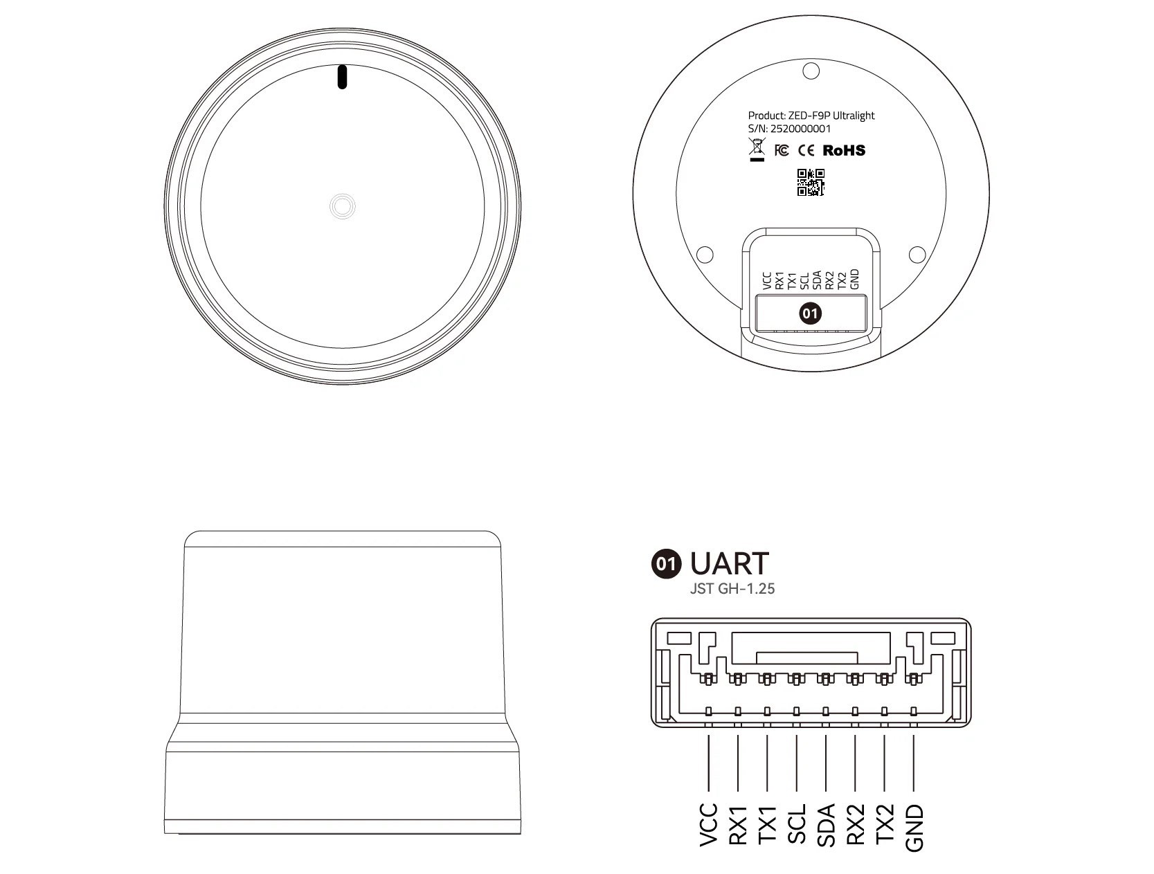H-RTK F9P Ultralight is an ultra-lightweight RTK GNSS module with U-blox ZED-F9P, an IST8310 compass, and an integrated helical antenna. It is designed specifically for weight-conscious applications where every gram counts.