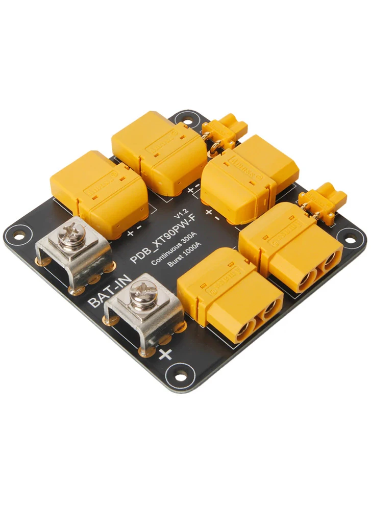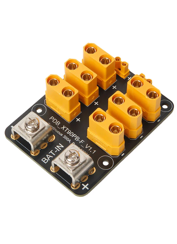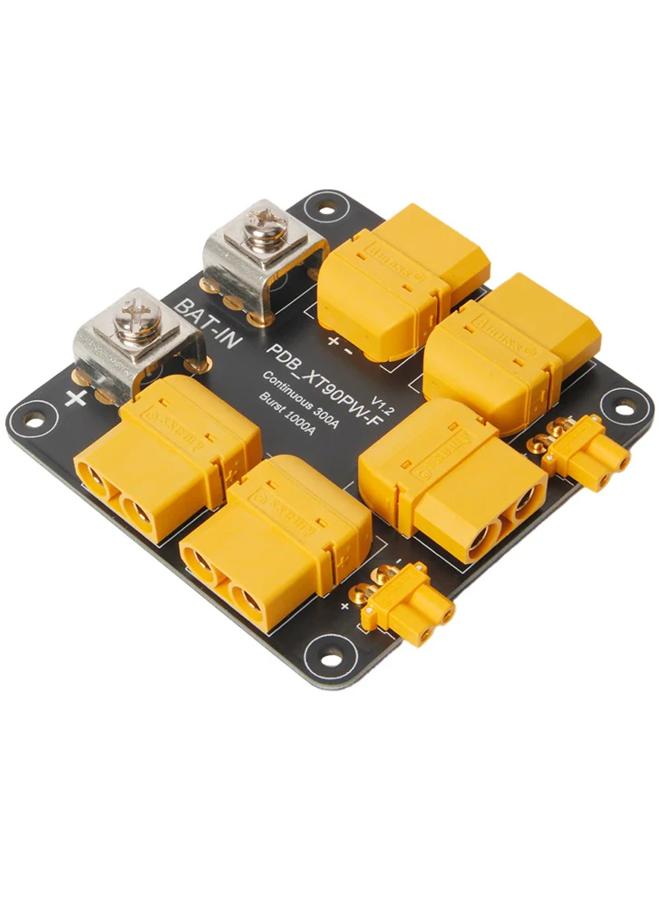 This Power Distribution Board (PDB) 300A is designed to handle high-current applications, making it ideal for demanding power setups. It is compatible with PM08 series power modules and supports various high-current, multi-output configurations. The board utilises 10 oz copper, ensuring superior thermal management and conductivity under heavy current loads.