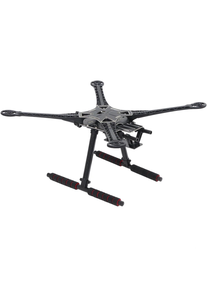 This S500 frame is composed of a mixture of materials. The arms are made of high strength, ultra-durable Polyamide-Nylon composite material reinforced with carbon fibre rod through the centre. The landing gear consists of 16mm & 10mm diameter carbon fiber tubes connected via plastic tee connectors that have been thickened and strengthened compared to the previous version.