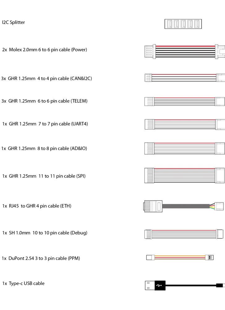 - 3 x GHR 1.25mm 4 to 4 pin cable (CAN&I2C)