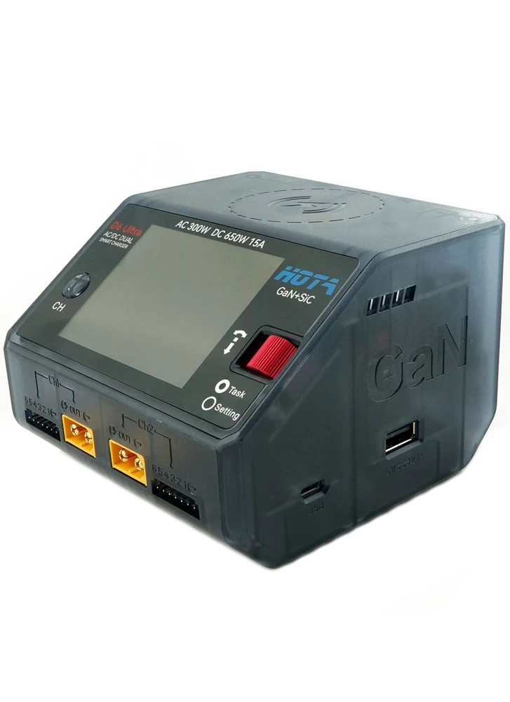 HOTA D6 Ultra – dual-channel 650W AC/DC smart charger with GaN tech, USB output & 6S LiPo support for fast, efficient charging on the bench or in the field.