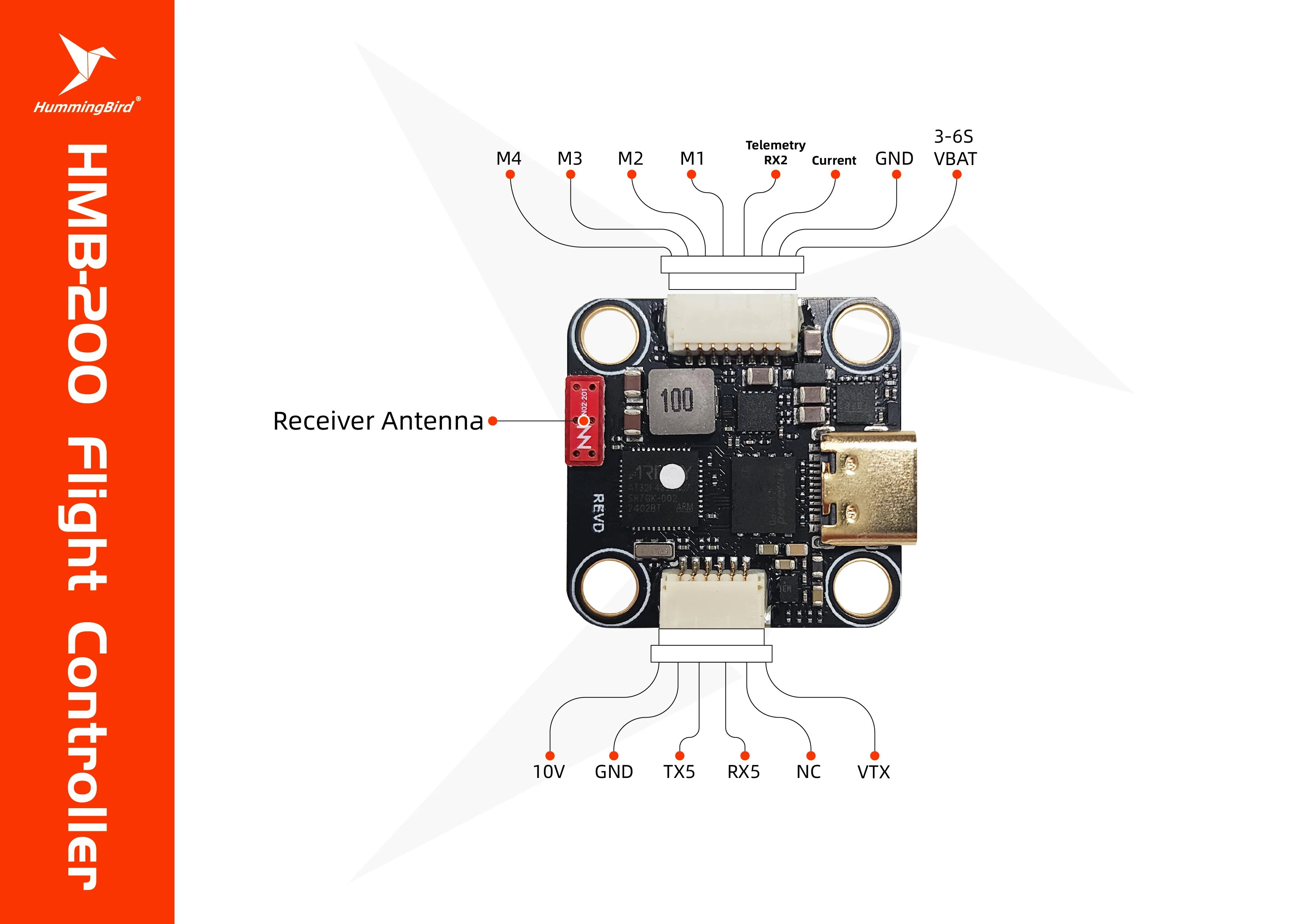 - 1x Hummingbird 200 RaceSpec Flight Controller – AT32F435 20×20 FC with Built-in ELRS 2.4GHz for FPV Racing