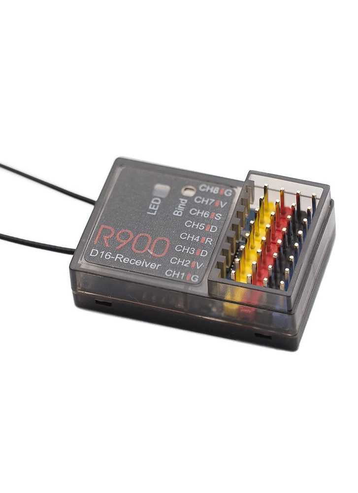 The R900 has a unique feature, a TX/RX data connection for Pixhawk, enabling a telemetry display on a compatible RC.