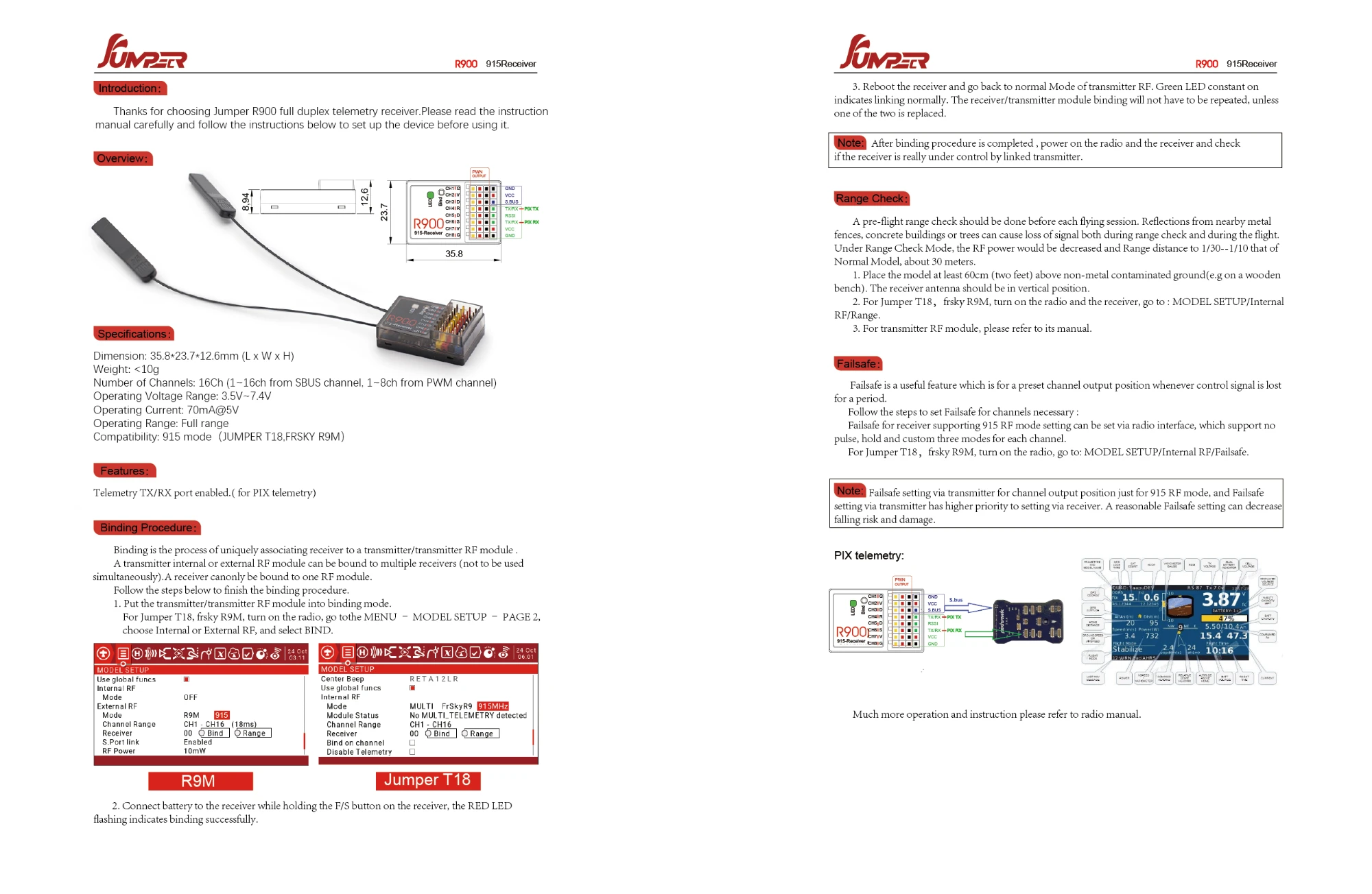 - Compatibility:ย 915 Mode (Jumper T18 /ย R9M (ACCST))