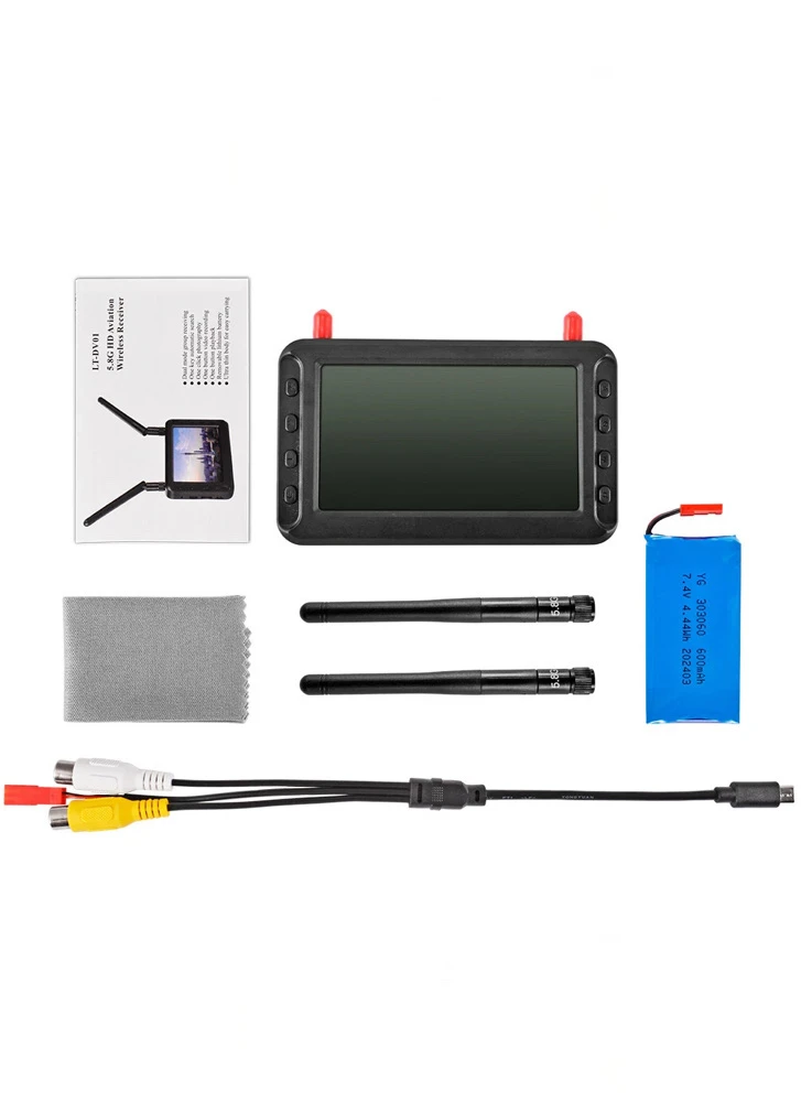 The LT-DV01 is a compact 5.8GHz FPV receiver and DVR with a bright 4.3-inch LCD display, offering a simple and portable way to view and record analogue FPV video. It features dual-mode channel scanning with one-key auto-search, giving you fast signal acquisition whether youโre checking a quad on the bench or monitoring a live feed in the field. The LCD panel delivers clear, high-contrast images, and its ultra-thin, lightweight design makes it easy to carry in any kit bag.