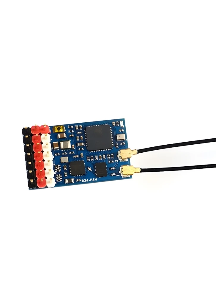 Equipped with an ESP32 processor and SX1281 RF chip, the R24-P6V operates on the 2.4GHz frequency band and features 6 PWM outputs for connecting servos or other peripherals. The receiver supports 2-6S LiPo battery voltage sensing, allowing you to monitor your aircraft’s power status in real-time.