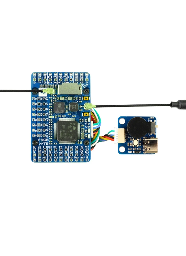 F405 WTE ELRS BannerThe Matek F405 WTE is a fixed wing flight controller compatible with Ardupilot, and iNav.ย The FC includes a ESP32 module onboard that lets you use this as either a expressLRS (ELRS) 2.4Ghz receiver, or a WiFi telemetry module with Ardupilot (MAVlink).ย This FC uses the 3rd generation ICM42688-P IMU along with a SPL06-001 Barometer.ย The USB port is on an external breakout/buzzer board for easier access when installed inside the body of the model.