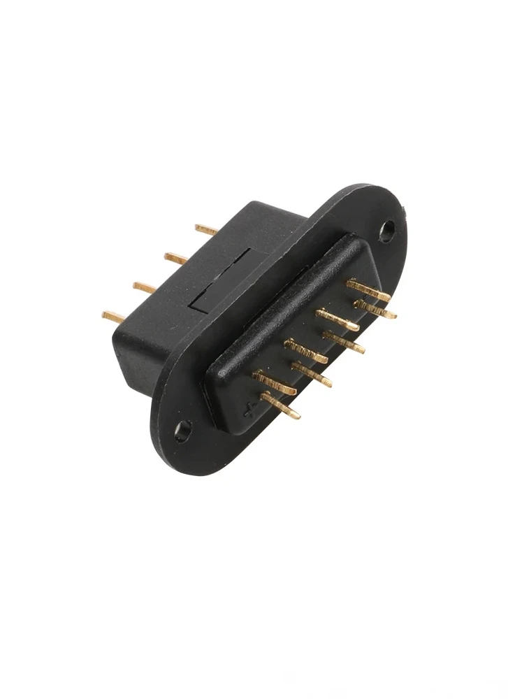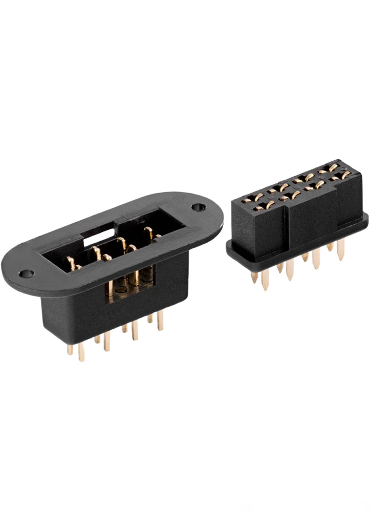 This MPX connector feature 8 pins, contained within a plastic housing. It is typically used for joining servo and multi-core signal connections. It particularly useful for airplanes, for plug-in connections between fuselage and wings or wing-to-wing wiring.