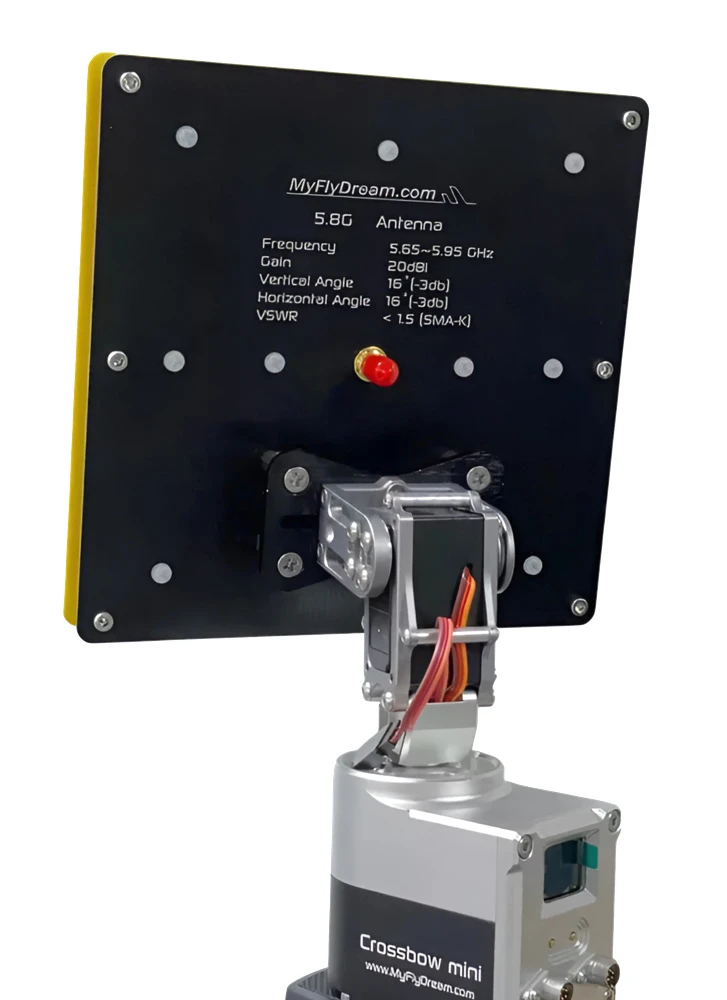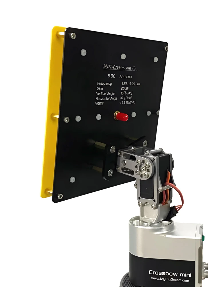 Elevate your FPV setup with the MyFlyDream MFD 5.8 GHz antennaโ€”engineered for long-range performance with a commanding 20 dBi gain and a radiation pattern that keeps your signal locked. Designed as an accessory for the MFD Crossbow Mini ground station, this directional patch antenna is intended for use with antenna trackers and long-range ground stations, and is not recommended for direct mounting on FPV goggles. It delivers a focused beam with a -3 dB point of ยฑ16ยฐ, covering the full 5.65โ€“5.95 GHz band. With a VSWR of less than 1.5 (SMA-K), it ensures efficient performance and minimal signal loss. Supplied with both SMA and RP-SMA cables, itโ€™s ready to integrate with a wide range of FPV equipment.
