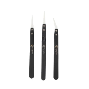 This is a handy set of tweezers with an assortment of sizes and tips. It also comes complete with a canvas storage case.ย Each is electroplated with ESD coating, which is anti-static thus protecting the electronic components against damages due to static electricity.