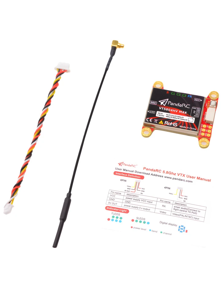 • 1x PandaRC VT5804HV Max 30×30 5.8GHz VTX – MMCX
