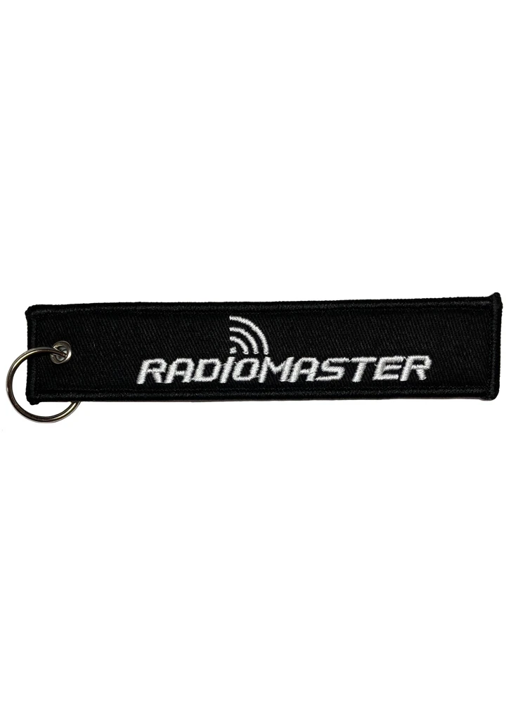 The tag is made of a tough polyester material andย has “Remove Before Flight” and the RadioMasterโs Logo embroidered on it. There is a metal-reinforced hole on one end with the supplied keyring attached.