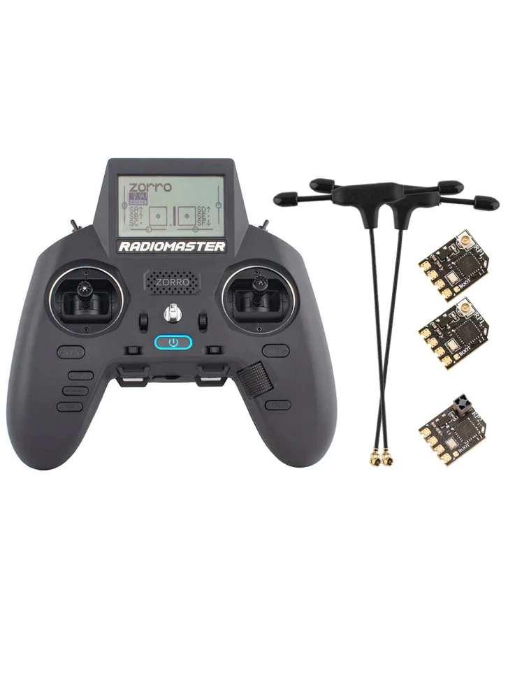 The Zorro ELRS starter set include the Zorro Radio Controller and 3 ELRS receivers.