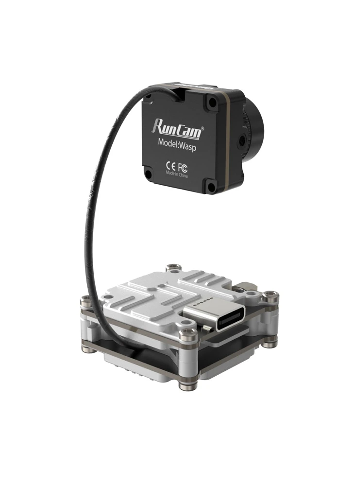 Theย RunCam Waspย is a digital FPV camera. The Wasp isย RunCam’s first DJI FPV compatible camera to supportย 120fps. It also offers a 28ms low latency and a 4:3 aspectย ratio. Inย comparison to the original DJI FPV camera, the wasp has anย extendedย FOV 155ยฐย vs. 150ยฐ. The camera also has better low light performance. This set includes the RunCam Link FPV Air Unit. The Runcam Link Digital FPV Air Unit is an advanced video transmission module that supports a 5.8 GHz digital video signal and 1280 x 720 60fps image transmission, with a transmission range of up to 4 km.