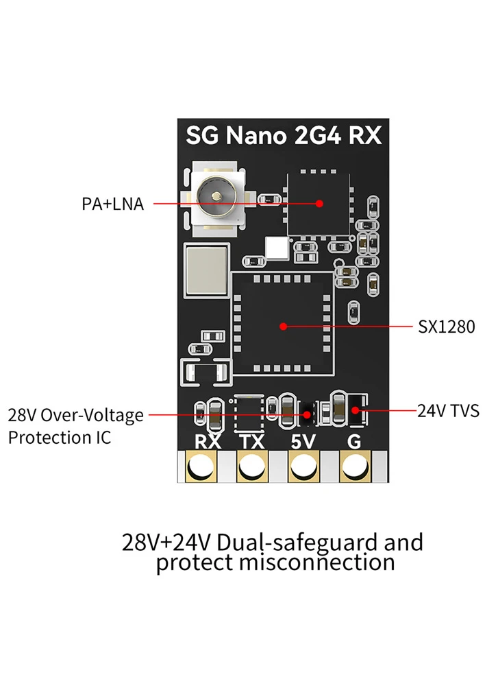 - Default Firmware: SkyGuy Nano 2.4GHz RX 3.6.0