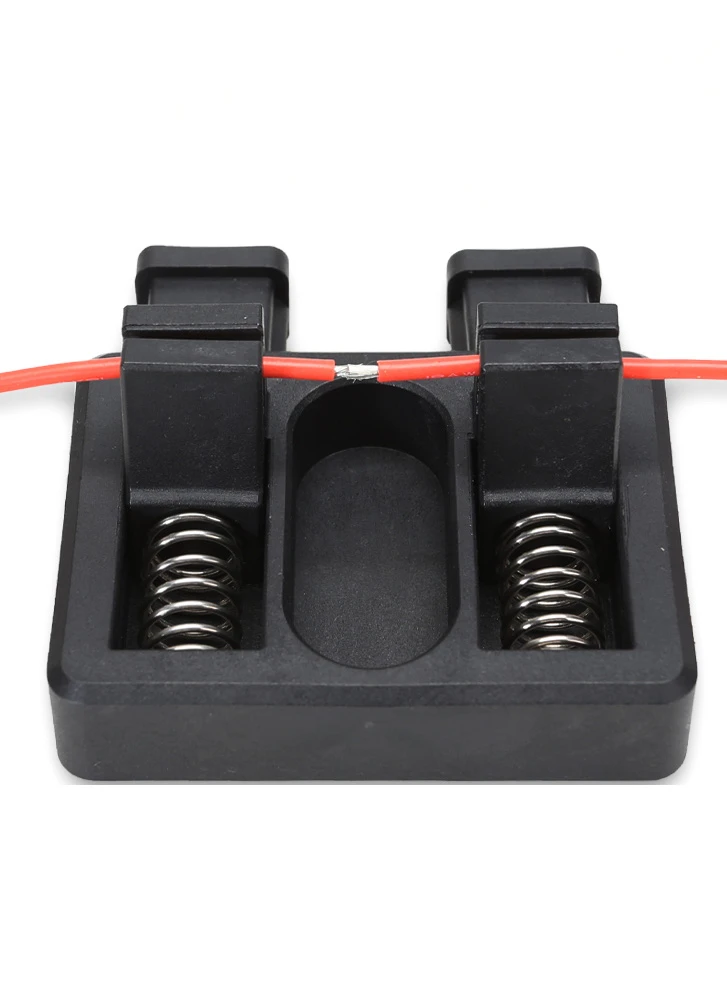 The jig includes two vertical jaws for pairing wires or anchoring leads before soldering, helping to prevent slips, cold joints, or singed fingertips.