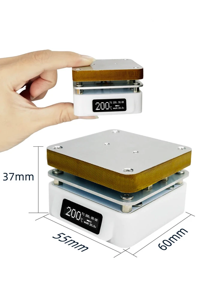 The T55 has a relatively smallย 55x55mm work area, which makes it more suited to assemblingย small PCBS. Itย does however offer anย advantageย for reworking jobs, where itโs beneficial to be able to concentrate the heat in a limited area of the PCB being worked on.