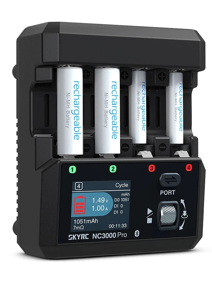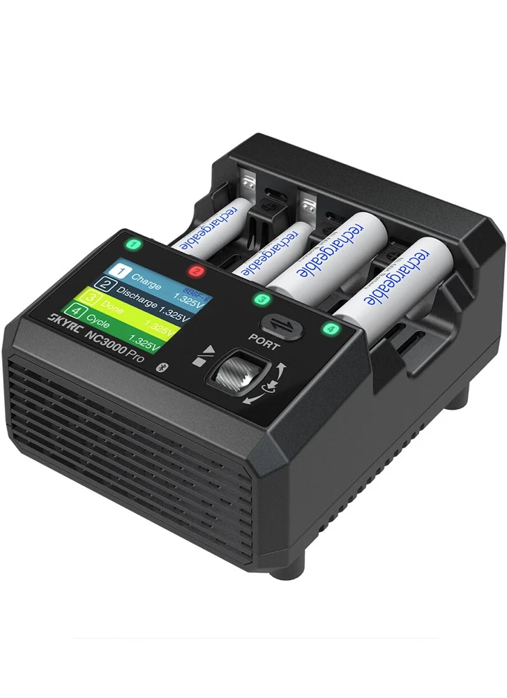 NC3000 Pro is a versatile charger designed specifically for AA/AAA NiMH and NiCd batteries, combining charging, discharging, and analysis functions in one device. It supports QC2.0 and QC/PD3.0 inputs, and with its four independent slots, NC3000 Pro can charge up to four batteries simultaneously.