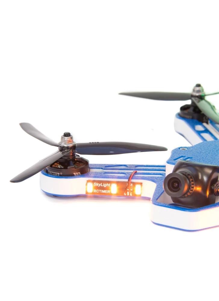 These LED light boards are ideal for racing drones. They are just the right size and they are super bright! If you fly line of sight (LOS) they will really help with orientation, even in bright daylight. Or equally, if you fly first person view (FPV) they will add to spectacle and help other FPVโers to follow you. The light boards are really simple to use. Thereโs no programming involved all you need to do is provide power. The LEDS are one colour only, but we offer a choice of five colours for you to choose from. The boards have built in voltage regulators so they are compatible with 3-6S LiPo. The boards hare two mounting holes so that you can screw them to your frame, but we prefer to use some 9mm doubleย sided foam tapeย to attach them.