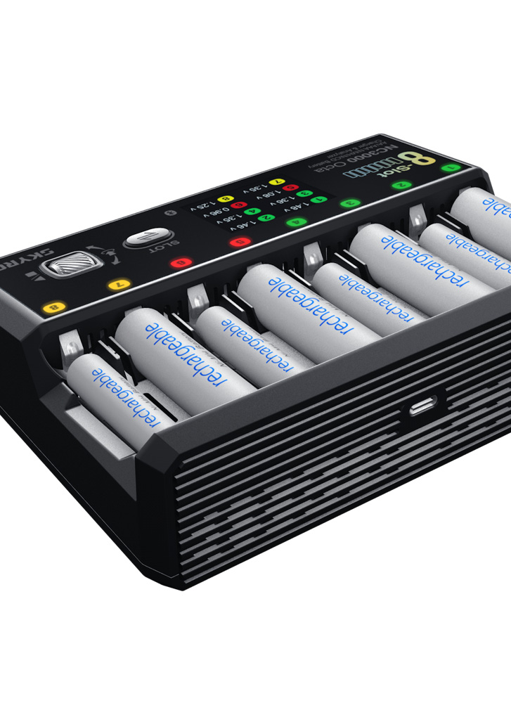 Charge and manage up to eight AA/AAA NiMH or NiCd batteries with NC3000 Octa. Featuring 7 working modes, PD fast input, discharge testing, and precise battery matching.