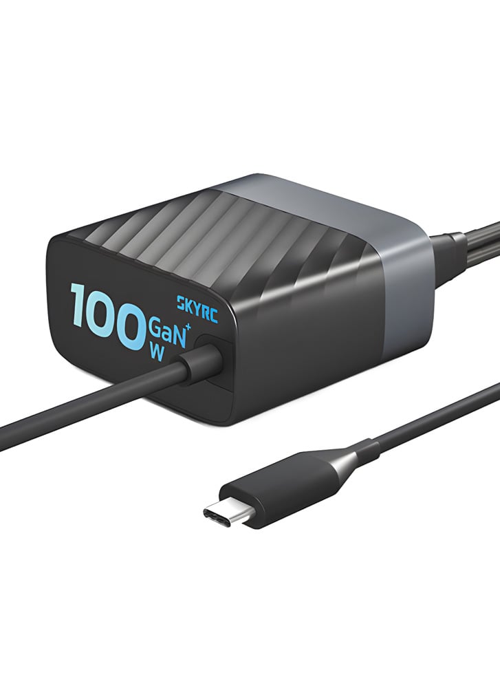 The SkyRC PDC100 is a compact, high-efficiency GaN power supply delivering up to 100W through its built-in USB-C output. Supporting PD3.0, PPS, and QC2.0/3.0 fast-charging protocols, it automatically adjusts output to suit connected devices, making it ideal for powering SkyRC smart chargers such as the B6neo, as well as other RC gear, laptops, or mobile devices. GaN (Gallium Nitride) technology ensures high power density, cooler operation, and excellent energy efficiency in a travel-friendly form factor. Intelligent line loss compensation maintains stable voltage under load, while built-in protection safeguards against over-current, short circuit, over-voltage, under-voltage, and overheating.