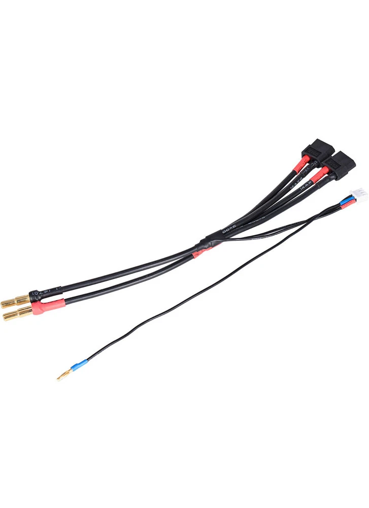 Using this cable, you can link the two XT60 output ports of the D200neo or T1000 SkyRc chargers to increase the charging current up to 35A. The cable connects to batteries withย 4mm or 5mm sockets and supports cell balancing for 2S lithium batteries.