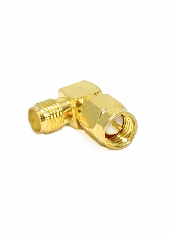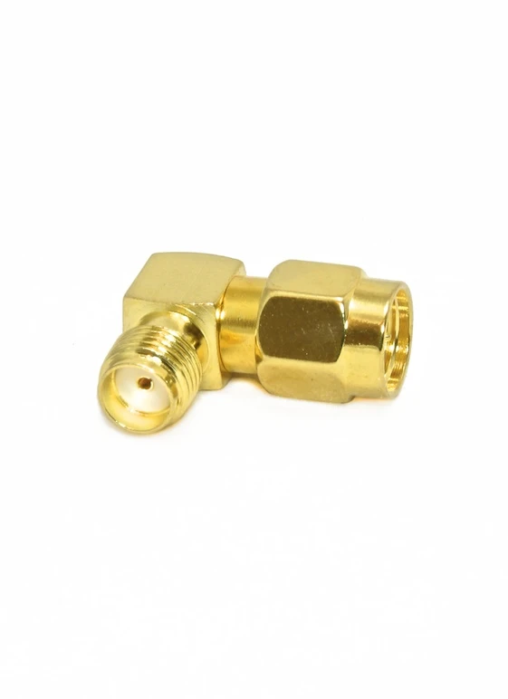 SMA Female to SMA Male Right Angle Adapter – used to connect antennas to your FPVย transmitter / receiver. The adapter has oneย female and one maleย pinย (like the picture).ย Gold plated for a higher quality connection.