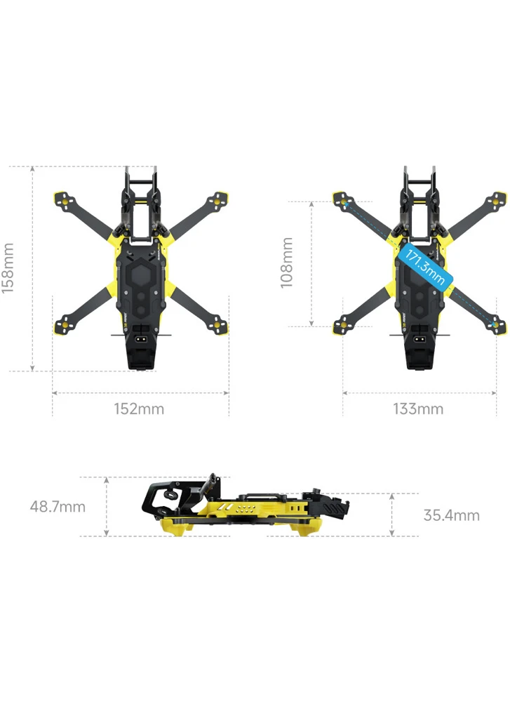 | Included 3D printed parts | GOPRO base, capacitor/buzzerbase, arm protection, 181GPS base, T-antenna base, CNC drone head TPU protection, camera anti-vibration module |