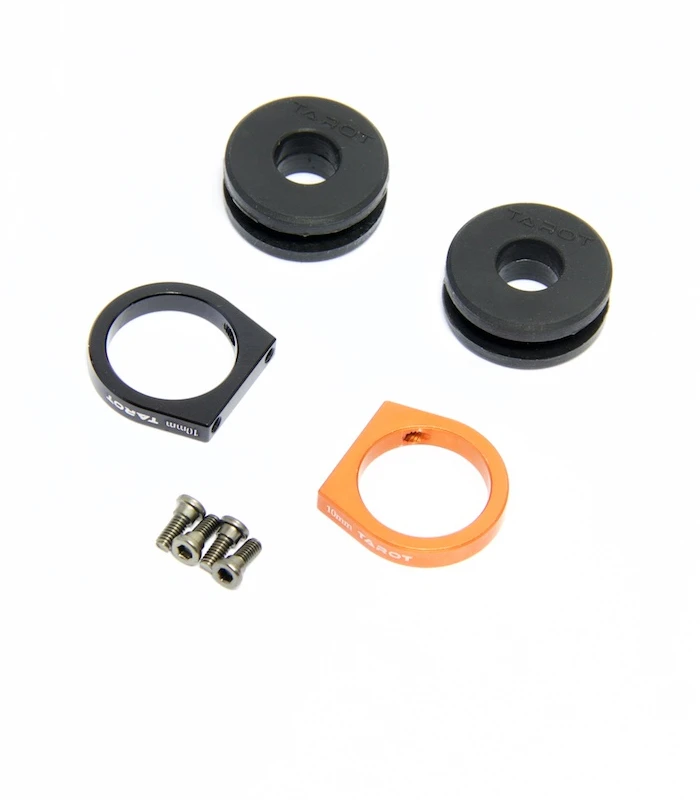 These particular tube mounts from Tarot are of a superiorย quality to the other 10mm tube mounts that we sell. The outer ring is CNC machined out of an aluminium alloy and theย rubberย damper is made from a high grade silicone, which provides excellentย vibration reduction.ย The metal parts are anodised in twoย separateย colours which helps with orientation when flying your multirotor.