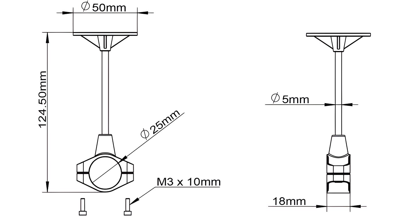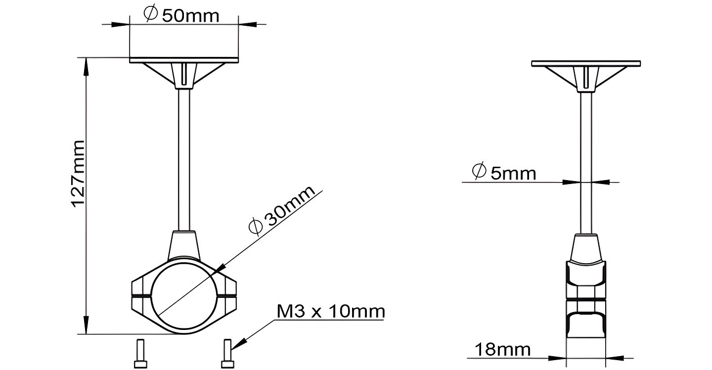 Lightweight fixed GPS mount for 25 mm / 30 mm tubes.