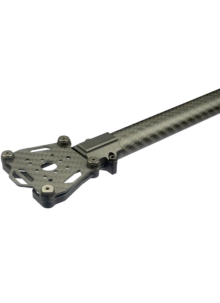 To begin with, Tarot have come up with a new folding structure for the TL4Q770. Instead of going with the usual umbrella-type folding design, this frame uses a horizontal folding self-locking mechanism that allows the frame to become very compact and therefore easier to transport (especially if you fit some folding props). Best still, the mechanism is completely toolless. Simply press a lever to release the arm and fold away. There’s another nice innovation for the battery comportment. It features a pull-out tray to allow you easy access for swapping out batteries. It doesnโt stop there, the motor mounts incorporate shock absorbers which help to reduce vibration reaching your flight controller and therefore improve flight performance. Lastly a retractable landing gear further enhances filming capabilities, allowing for unobstructed views.