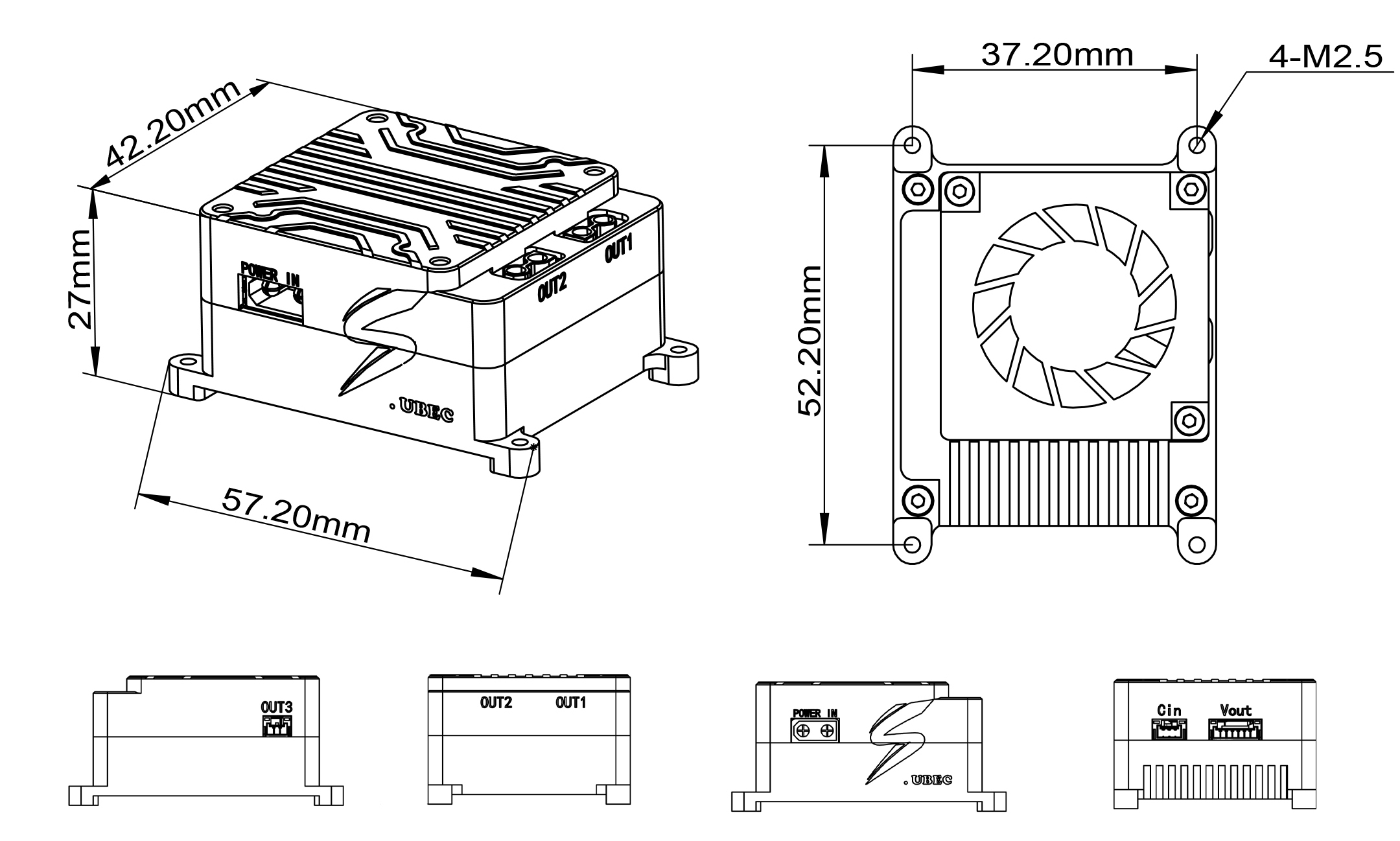 - Mounting Pattern: 52.2 × 37.2 mm (M2.5 ×4)