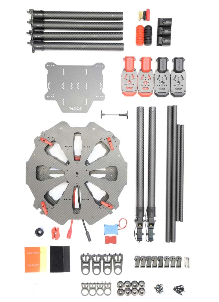 TAROT X4 is designed for professional aerial photography and heavy lifting applications. The frame features electronic retractable landing gear, foldable arms and integrated PCB.