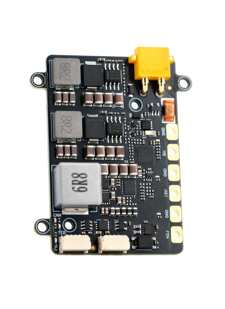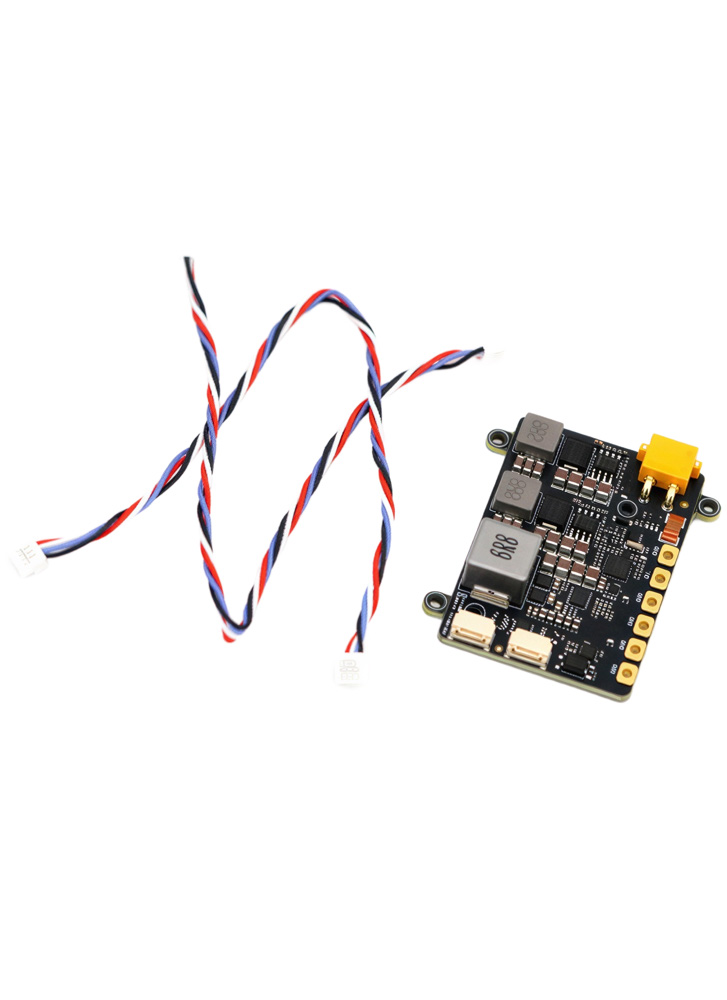 The TBS Lucid DroneCAN 20A Power Supply is a workhorse that will sit at the center of your drone to supply it with stable, filtered and reliable power. With up to 12S power input, it has plenty of support for large batteries. And 3 independent step-down voltage regulators, the module offers flexible output options with continuous current support up to 20A, while being one of the most lightweight power supplies around.