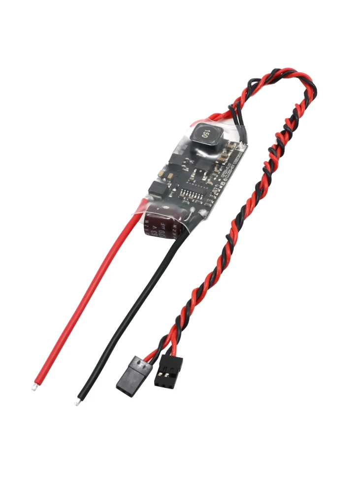 This BEC can be used with 6-12S voltage input and steps down to a stable 5V. The BEC is rated at up to 15amps.