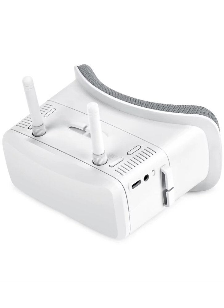 A built-in rechargeable Li-ion battery powers the goggles for around three hours, charged conveniently via USB-C. AV input and output are also supported, allowing connection to external video sources or DVR recorders for capturing flights.