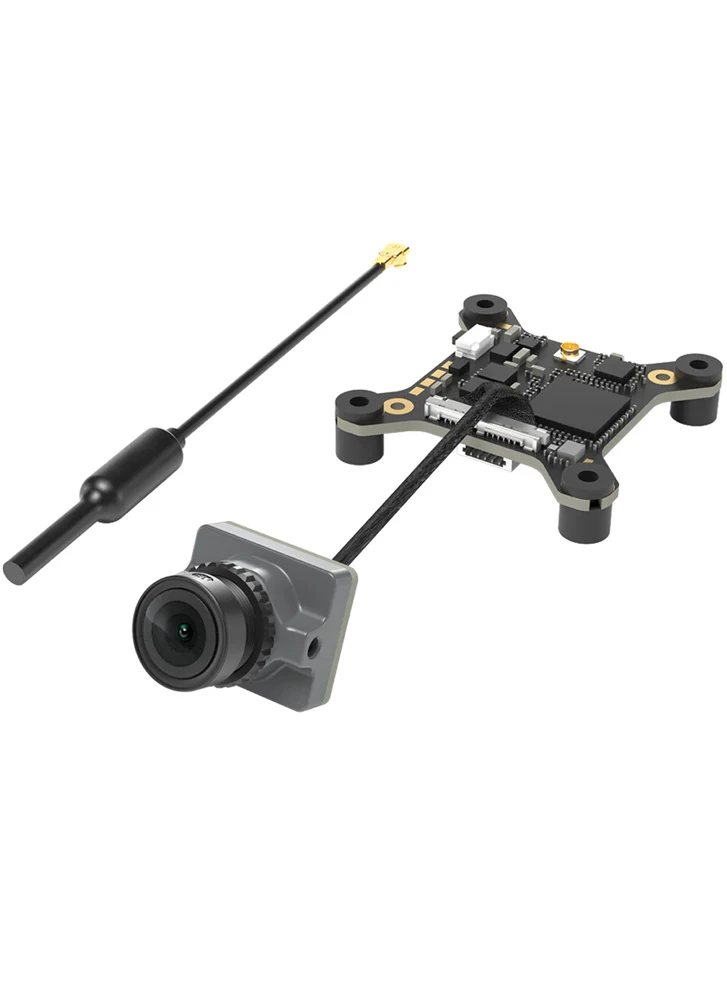 Operating in the 5.8 GHz band, the system supports multiple bandwidth modes and bitrates up to 25 Mbps, allowing pilots to tune image quality and link stability for different environments. A wide 3โ12.6 V input range makes it suitable for 1โ3S setups, while the small VTX and micro-size camera keep overall weight low.